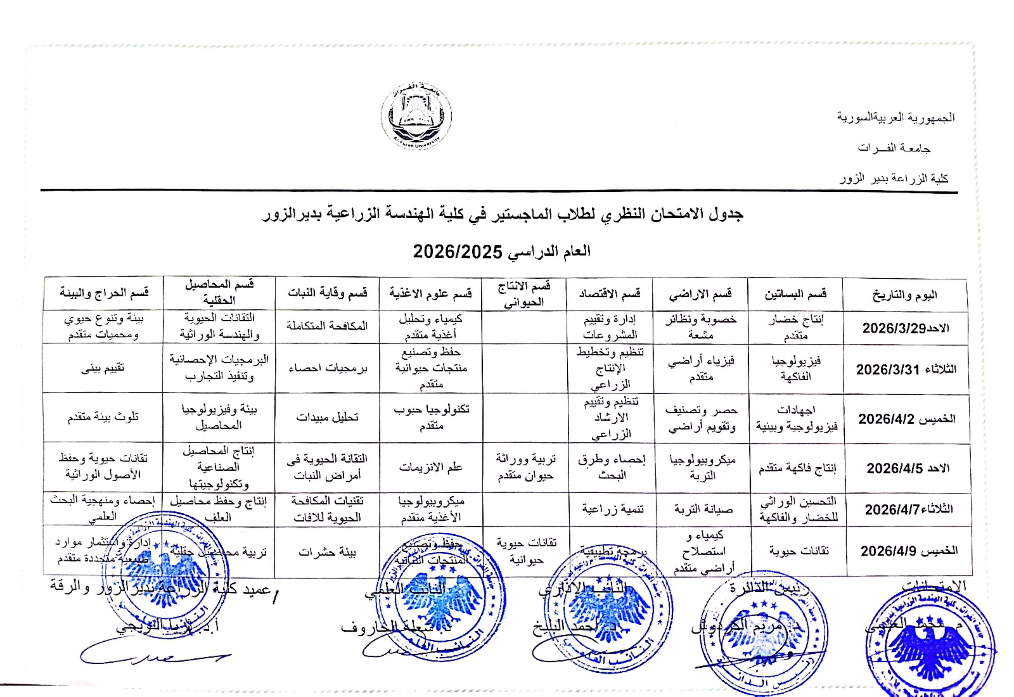 برنامج الامتحان النظري للدراسات العليا (ماجستير) لعام ٢٠٢٥ / ٢٠٢٦