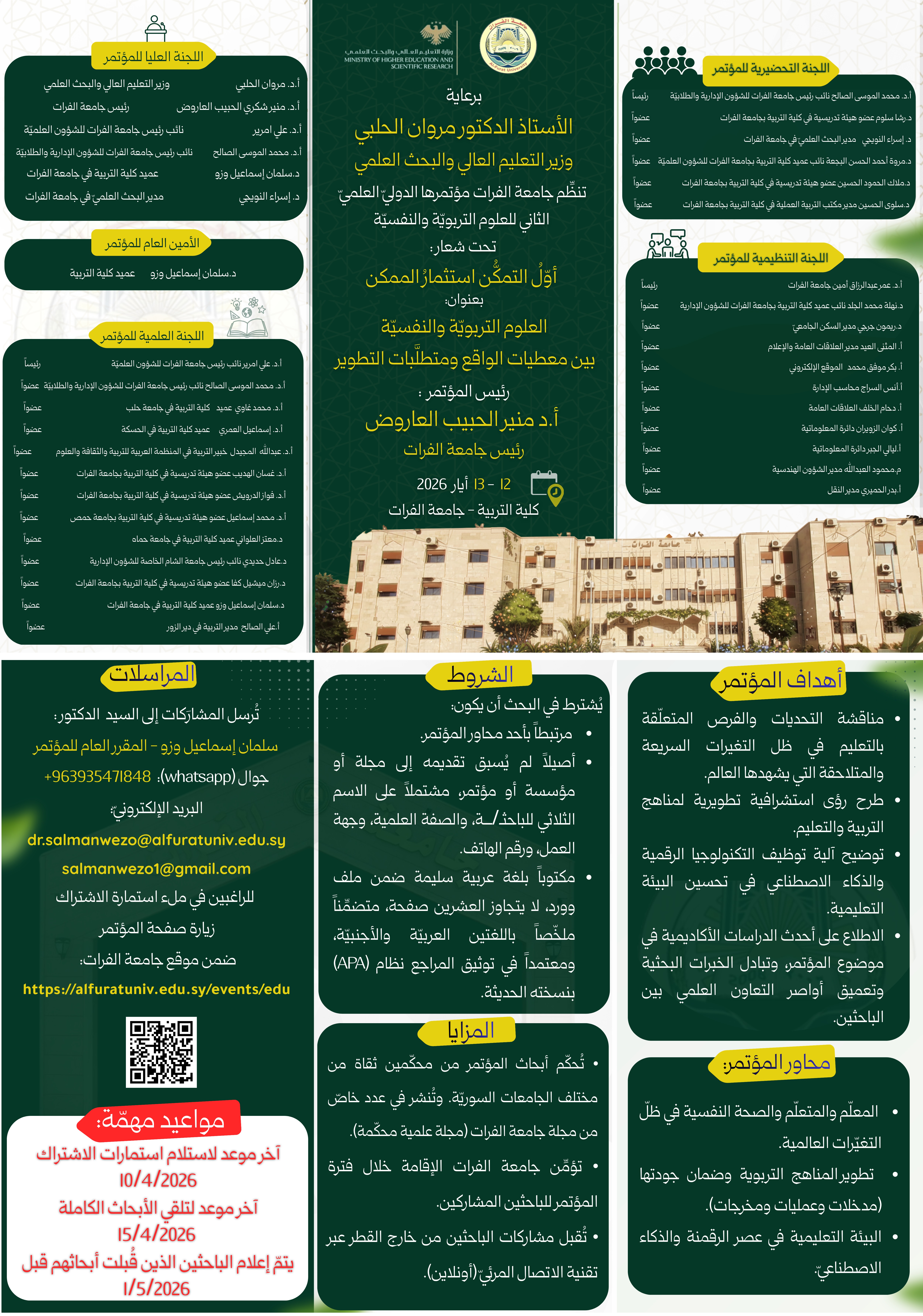 برعاية الأستاذ الدكتور مروان الحلبي وزير التعليم العالي والبحث العلميّ : المؤتمر الدوليّ العلميّ الثاني للعلوم التربويّة والنفسيّة بجامعة الفرات