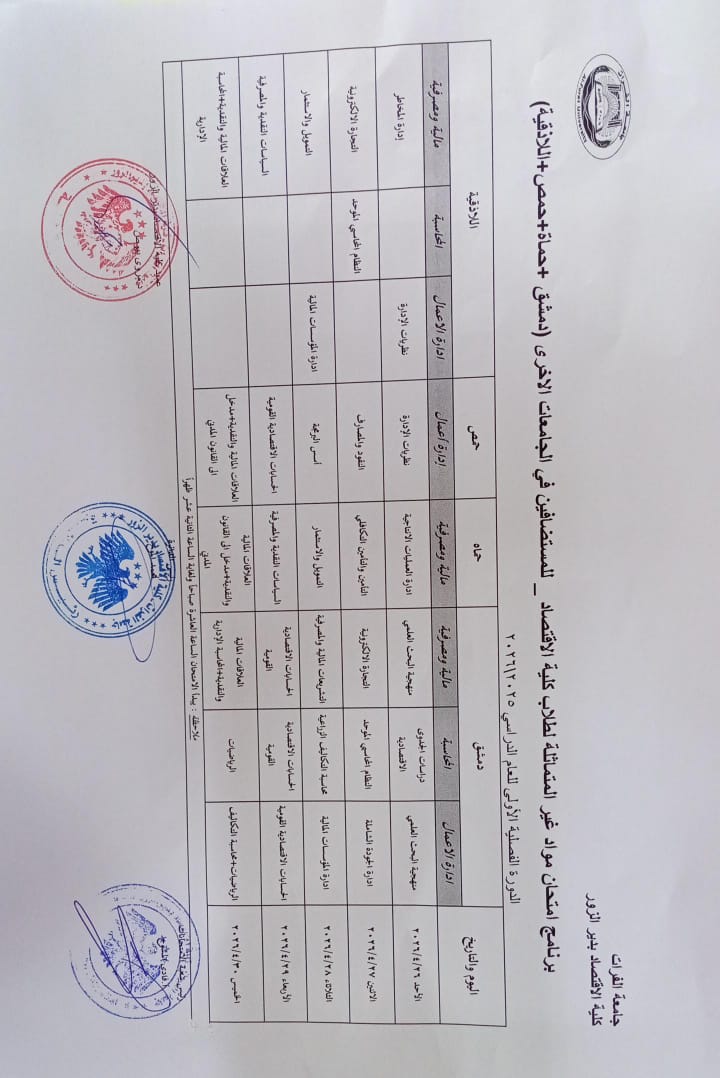 Calendario de exámenes de cursos para cursos no idénticos para el año académico 2025/2026