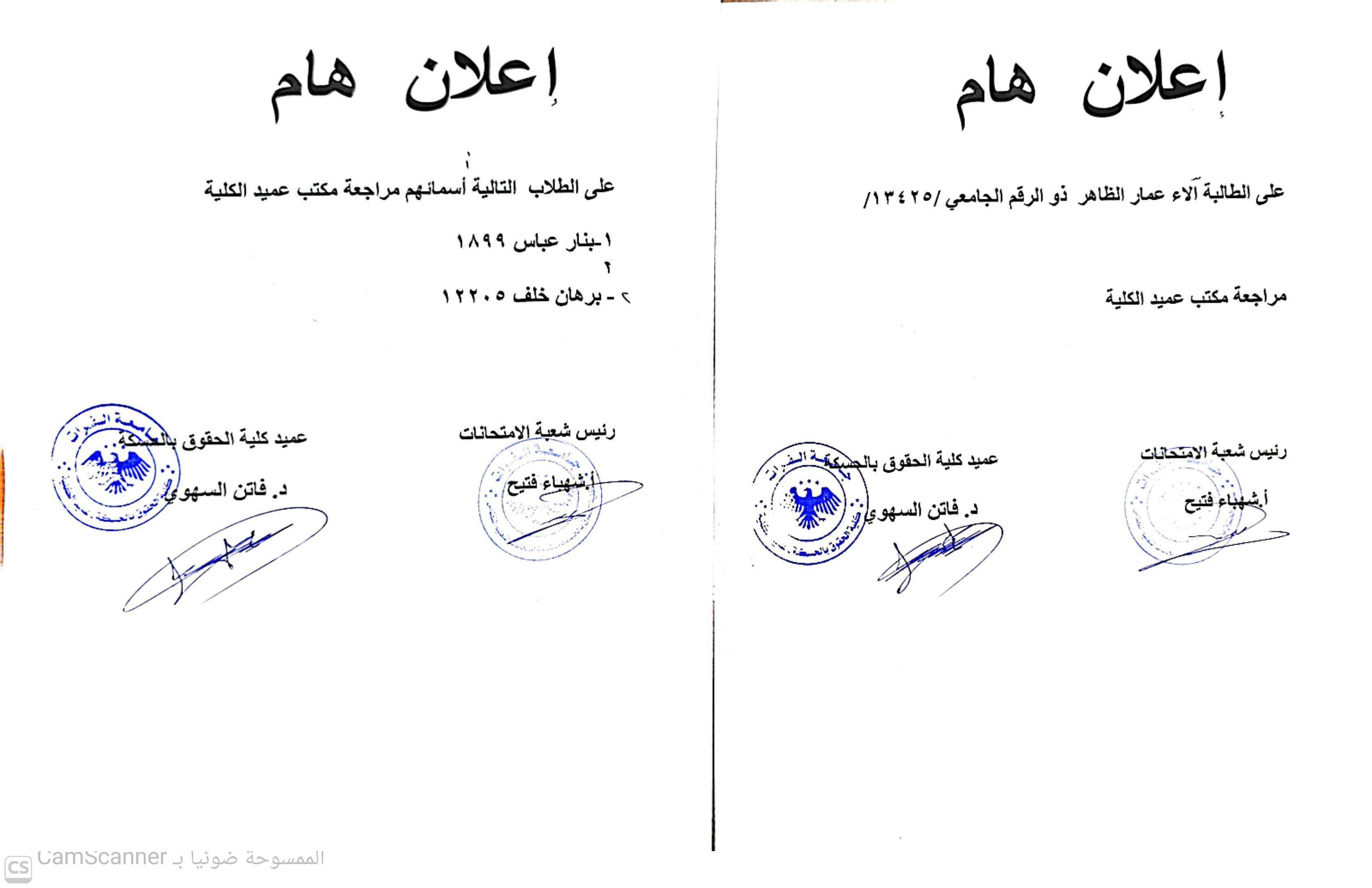 تأجيل امتحانات الماجستير ليوم الاحد ٥ / ٤ / ٢٠٢٦ إلى يوم الاثنين ١٣ / ٤ / ٢٠٢٦
