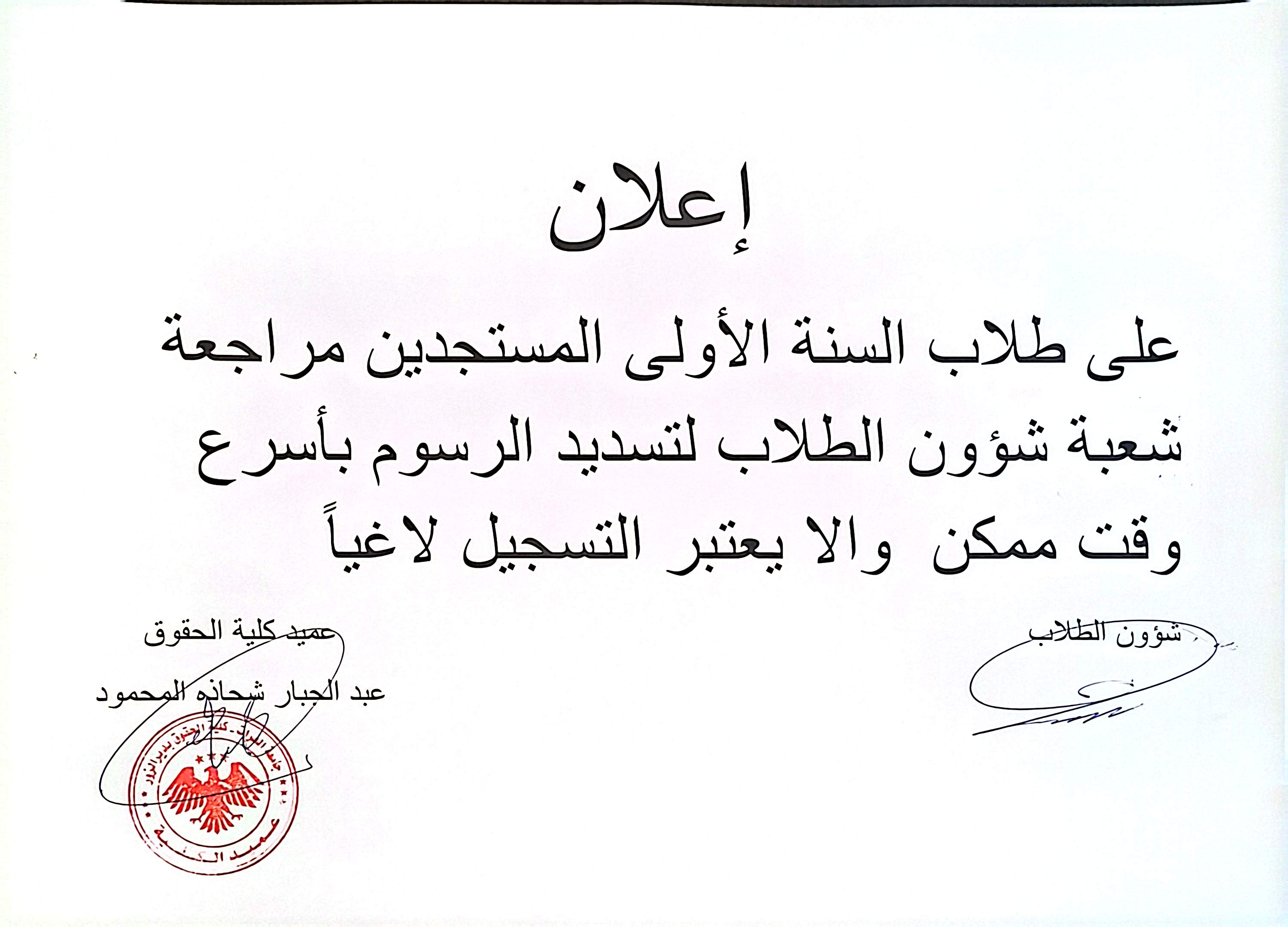 Startseite / Ankündigungsarchiv / كلية الحقوق في دير الزور