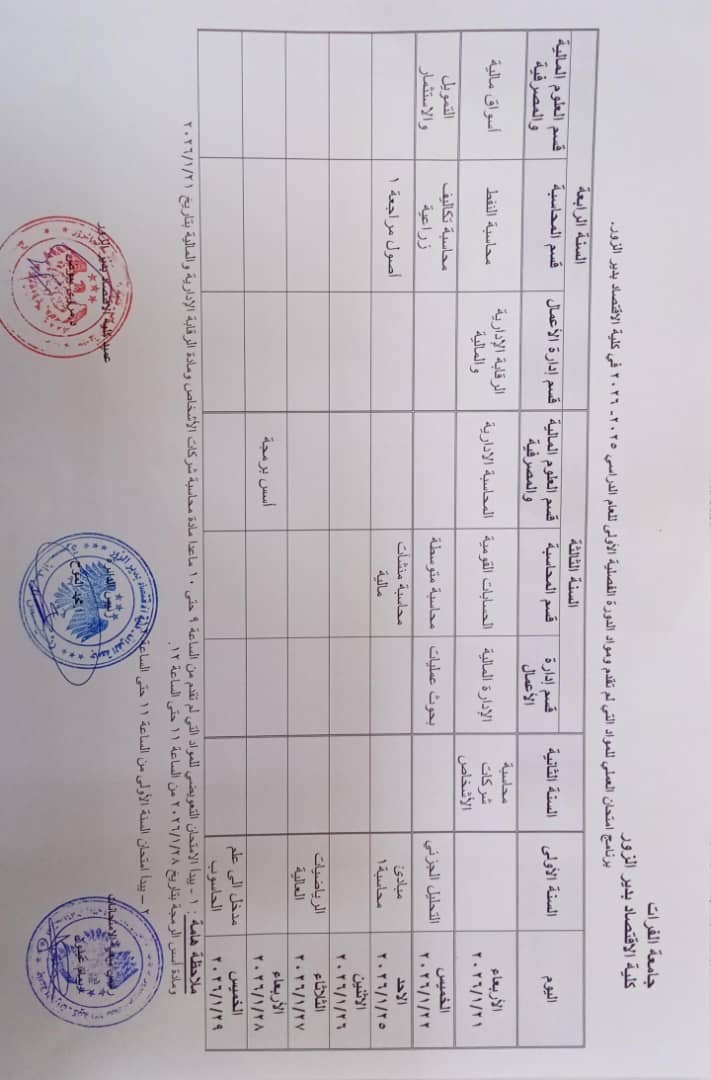 ماعدا مقرر شركة الاشخاص ومقرر الرقابة الادارية والمالية بتاريخ21/1/2026 ومقرر اسس البرمجة بتاريخ 28/1/2026 من الساعة 11.00ولغاية الساعة 12.00