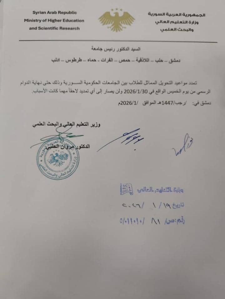 تمديد مدة التحويل المماثل في الجامعات الحكومية