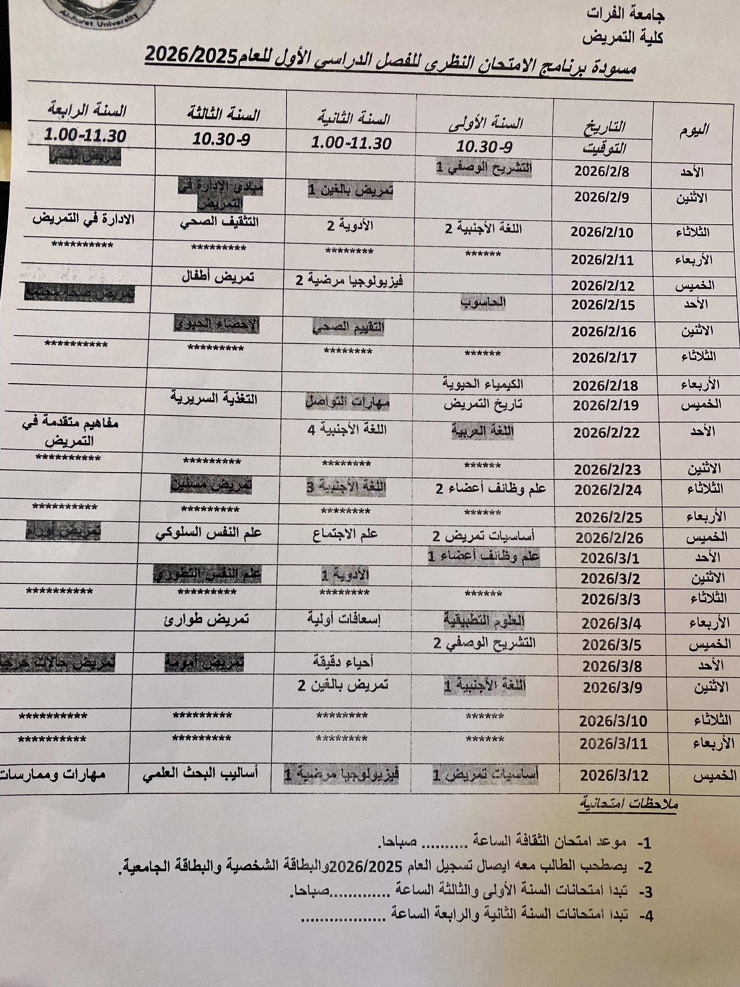 مسودة برنامج الامتحان النظري لكلية التمريض للفصل الدراسي الأول للعام ٢٠٢٥/٢٠٢٦ Anhänge Angehängte Datei anzeigen Herunterladen
