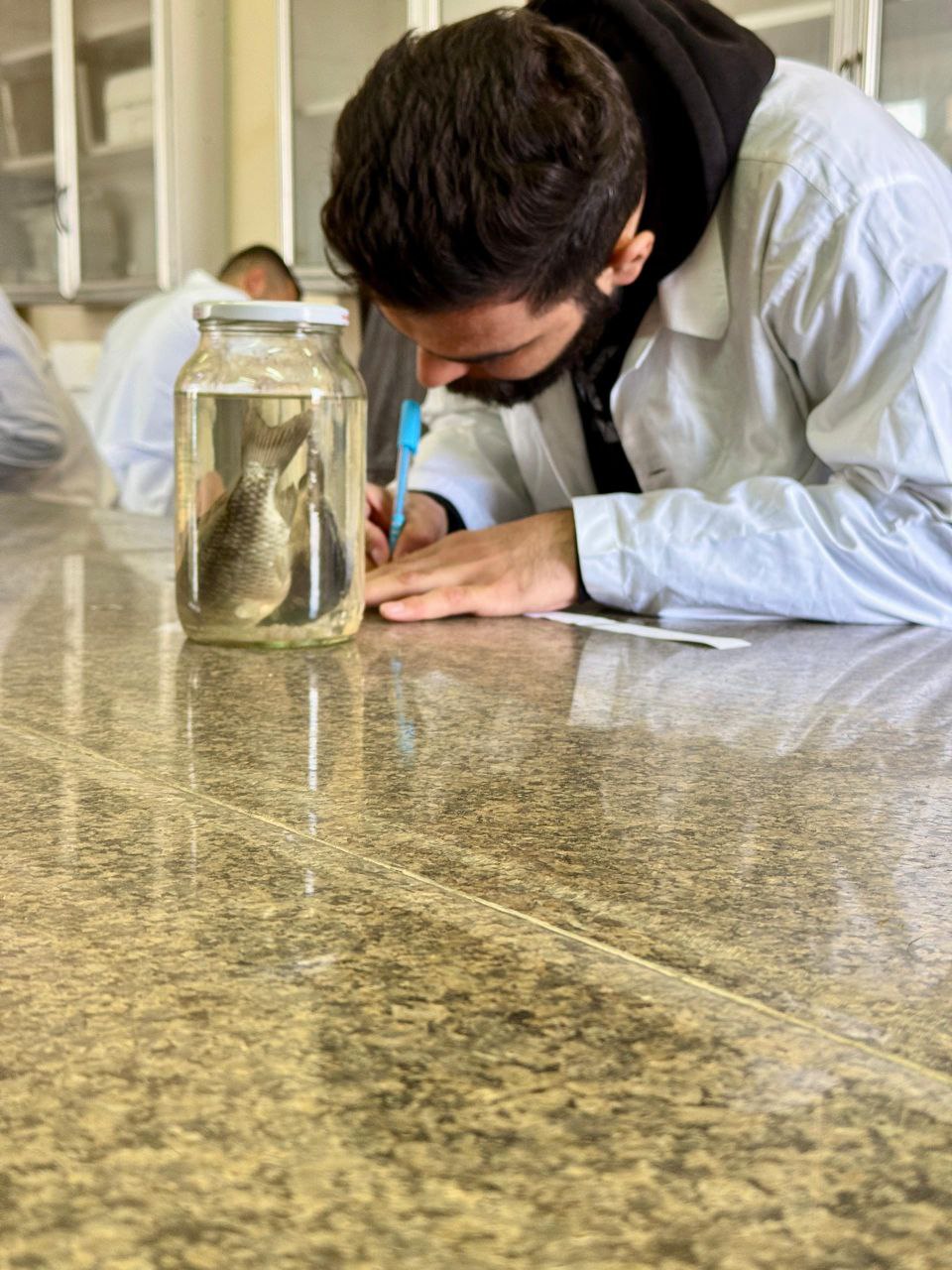 Praktische Prüfung für den Kurs „Fischzucht und Krankheiten“ für Studierende im vierten Studienjahr